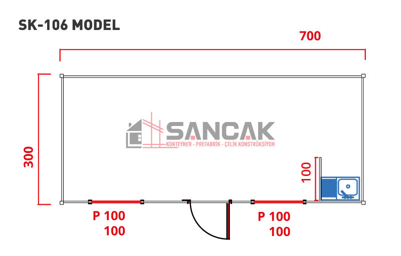Konteyner yapılarda standart olarak sadece soğuk su tesisatı çekilir. Talep dahilinde sıcak su tesisatı çekilebilir.