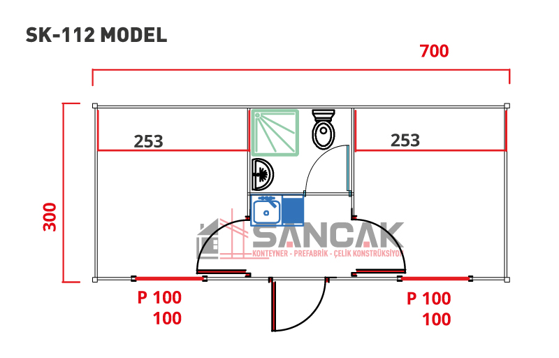 Konteyner yapılarda standart olarak sadece soğuk su tesisatı çekilir. Talep dahilinde sıcak su tesisatı çekilebilir.